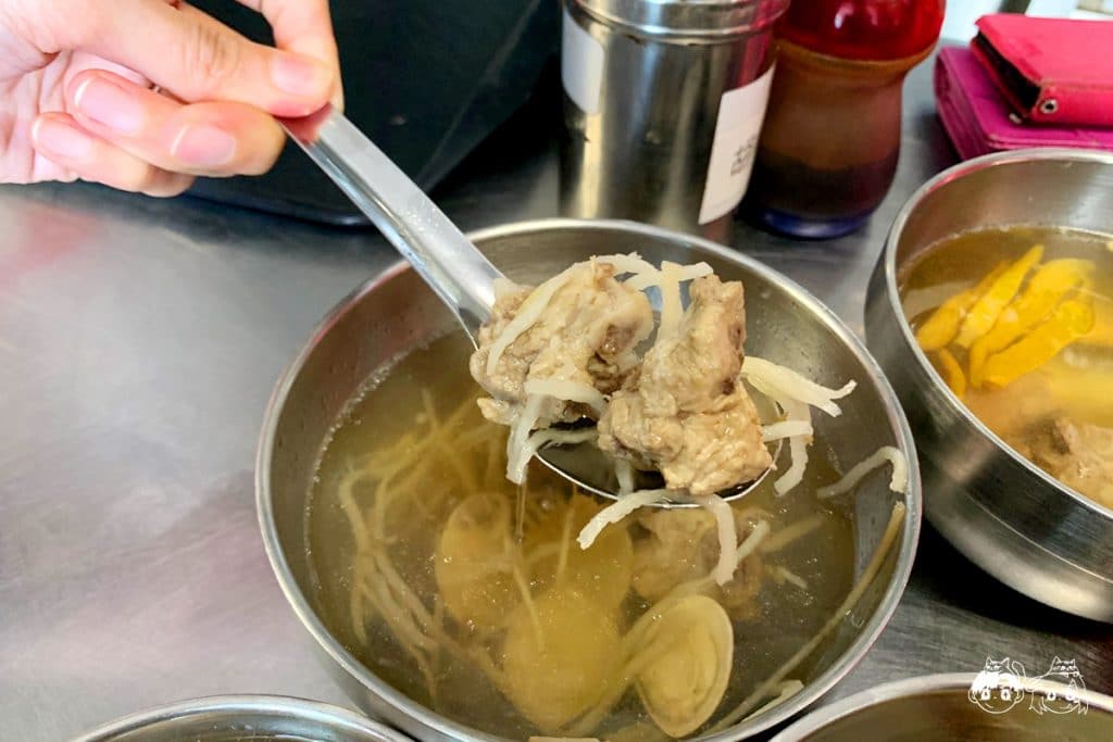 湯裡有不小的排骨跟不少的蛤仔呢,