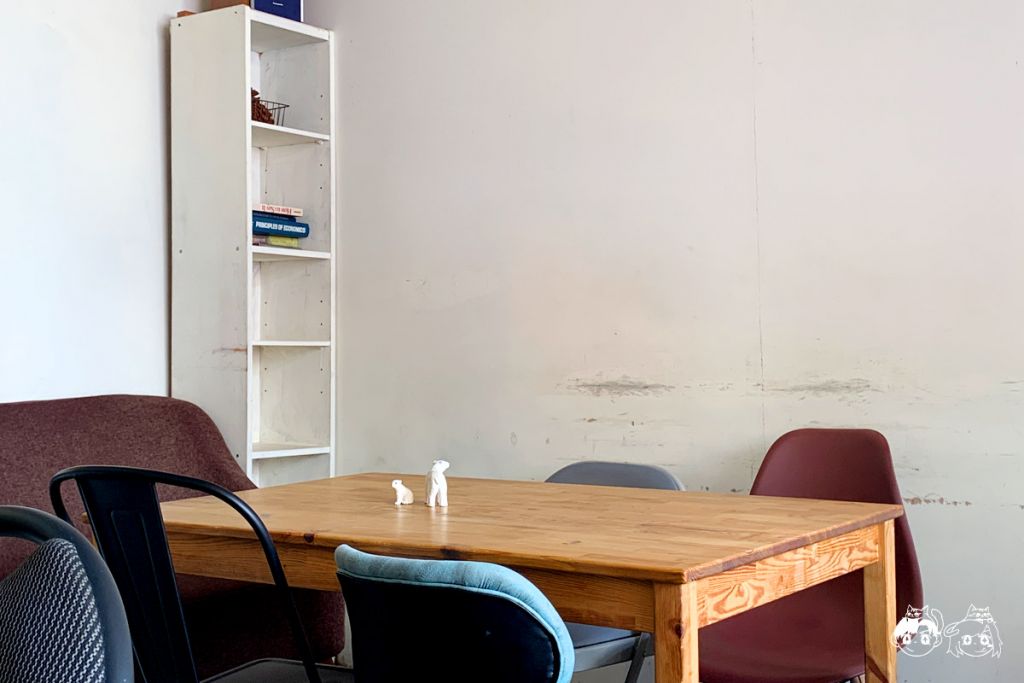 上樓後是一些散發古早味的舊桌舊椅和收藏書籍
