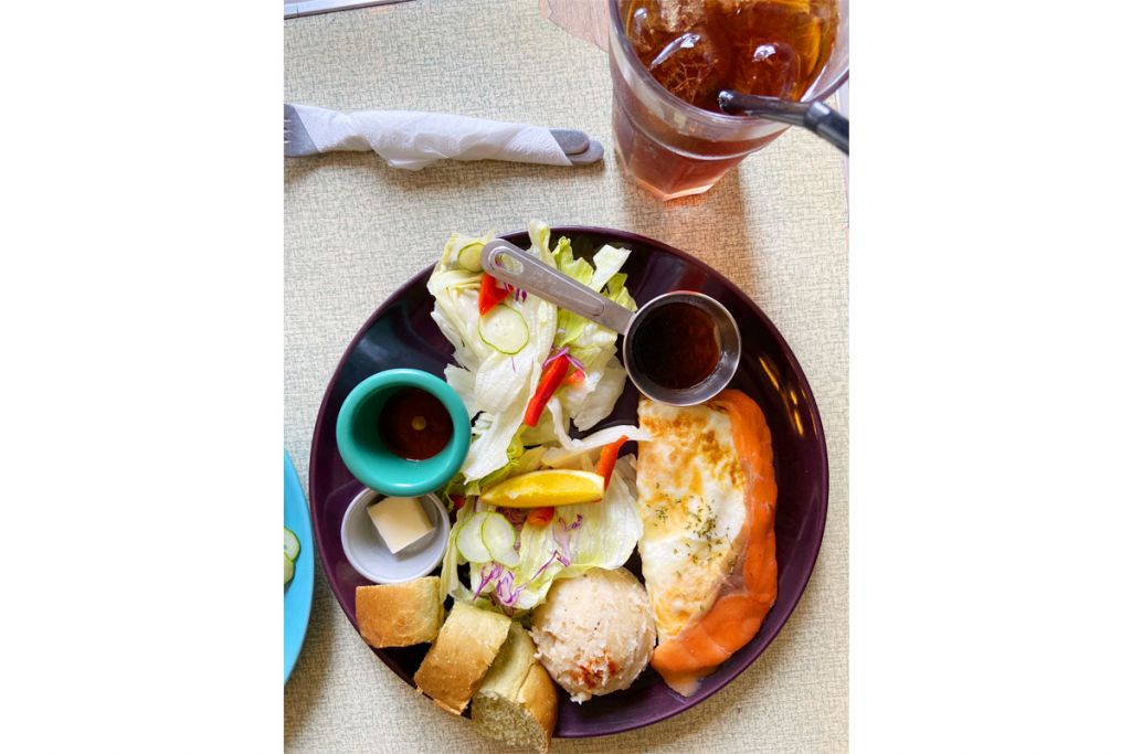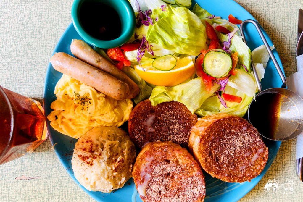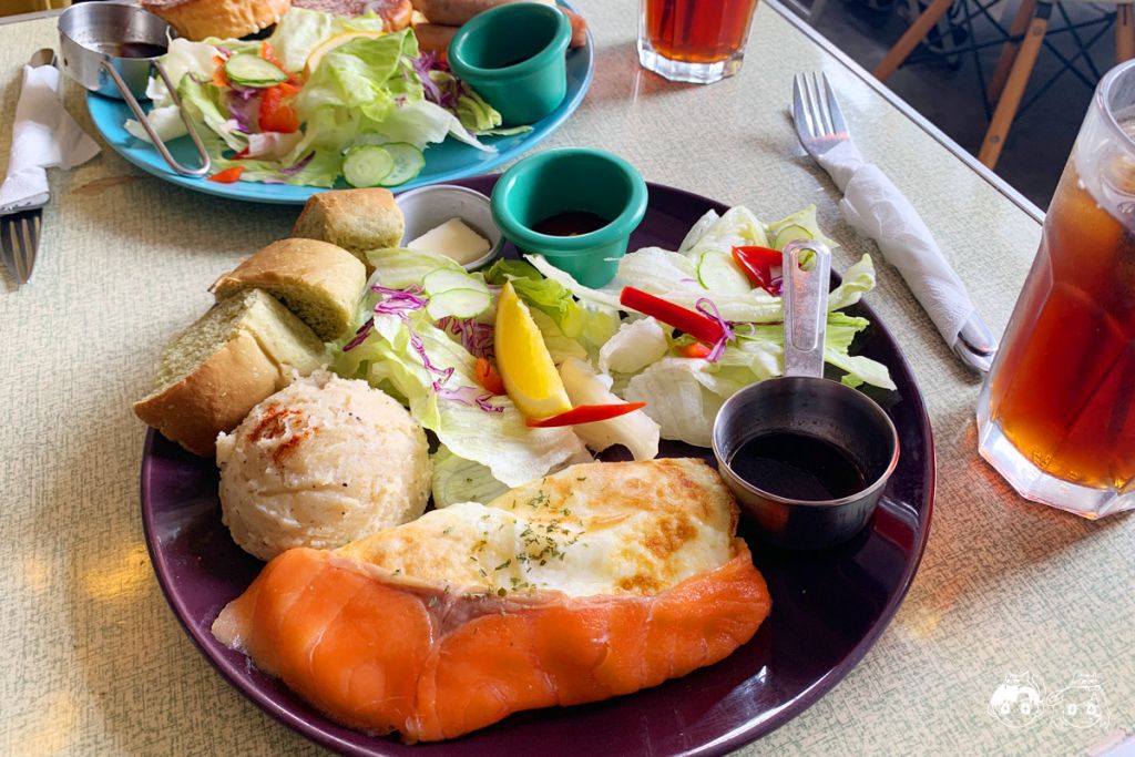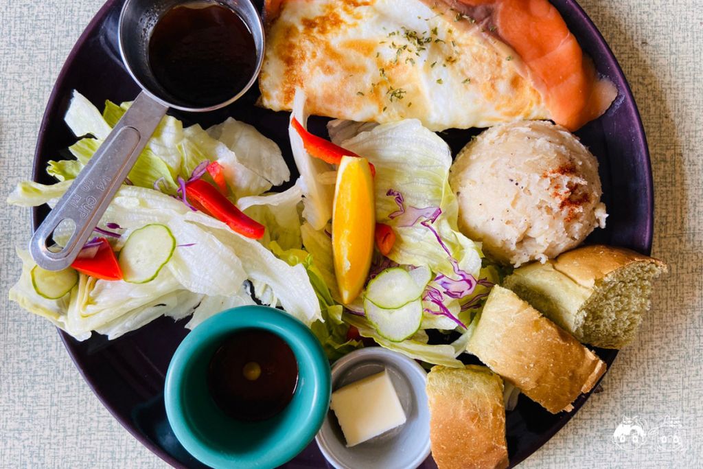 自家製鄉村麵包+雙份半熟太陽蛋AND起士夾心+煙燻鮭魚+沙拉+鹽味濃湯薯泥