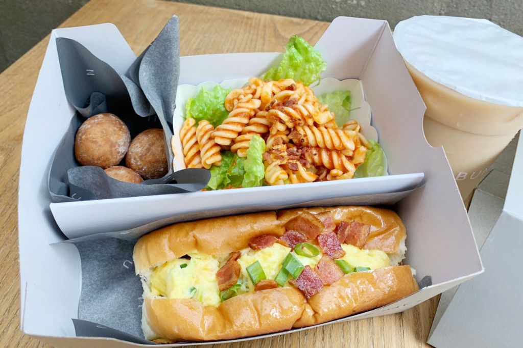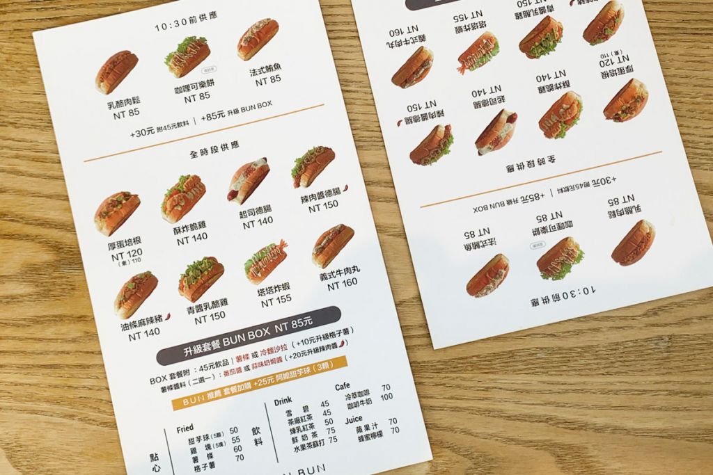 第一次來,點了分青醬乳酪雞(NT$ 155)跟厚蛋培根(NT$ 120),升級了其中一份為BUN BOX (升級NT$ 85)。